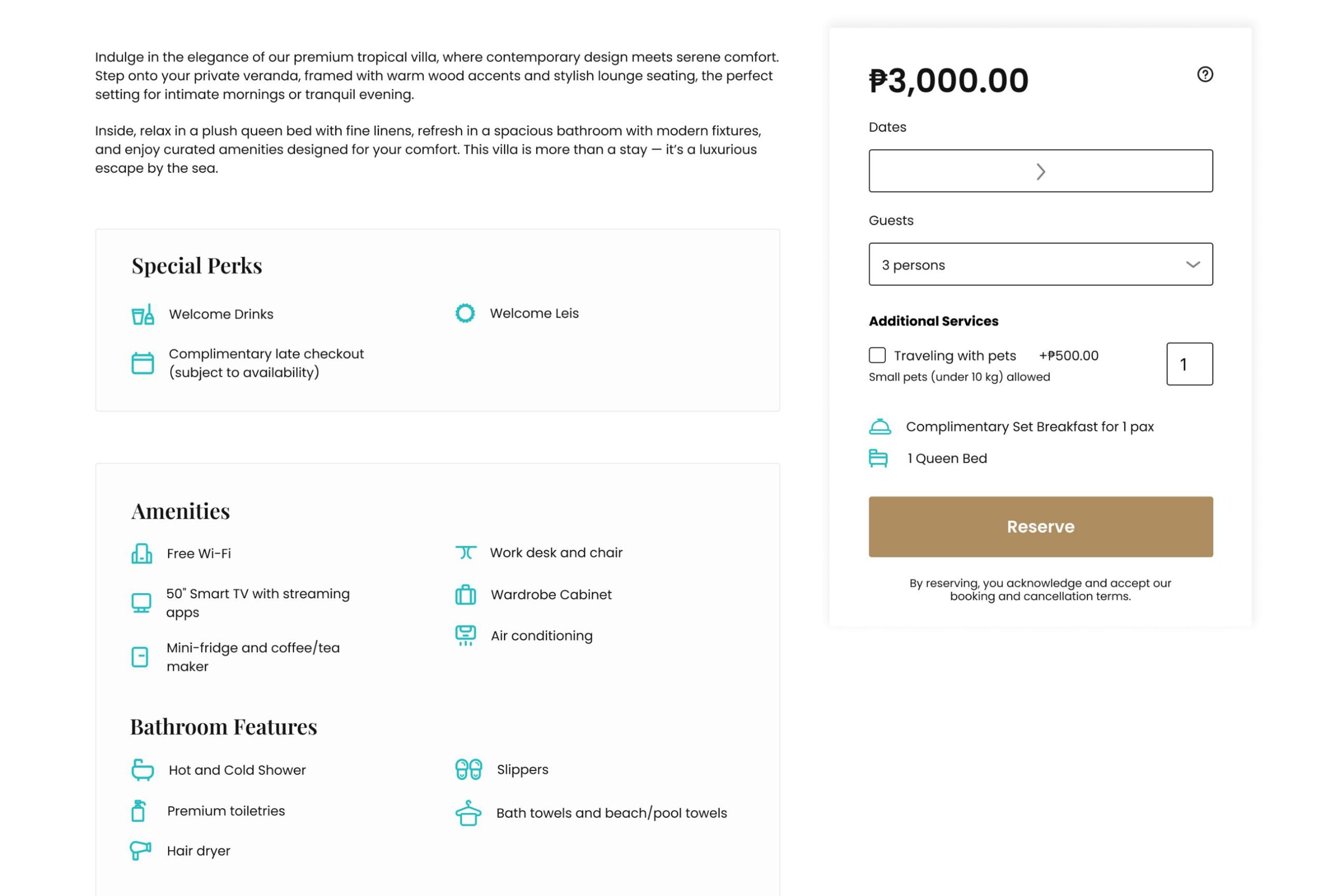 Guests check availability and book without leaving your site.